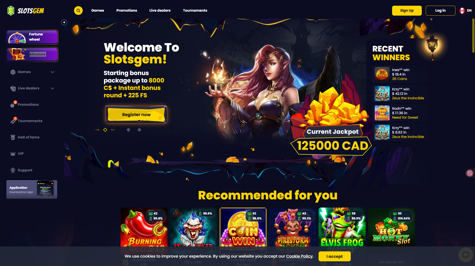 The platform’s library has expanded to over 5,000 games, prominently featuring “Recommended” titles with high RTPs—some reaching as high as 106.64% during promotional windows. The interface remains sleek and user-friendly, incorporating gamified elements like Missions, a Fortune Wheel, and a Hall of Fame to reward consistent play. Whether you’re chasing the 125,000 CAD current jackpot or competing in live dealer tournaments, the site emphasizes a high-energy, premium experience.